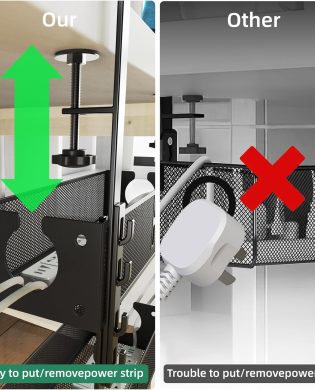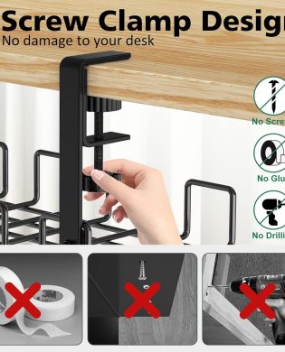 Multi-Model Under Desk Cable Management Tray 2 Packs Metal Under Desk Wire Management Clamp Mount Under Table Cord Management No Damage The Desk (Black)