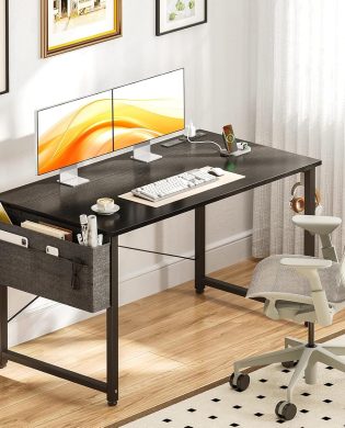 ODK Computer Desk – 48 Inch Office Writing Desk for Home, Student Study Desk with Storage Bag, Headphone Hook & Power Outlets, Modern Simple Table for Bedroom, Black