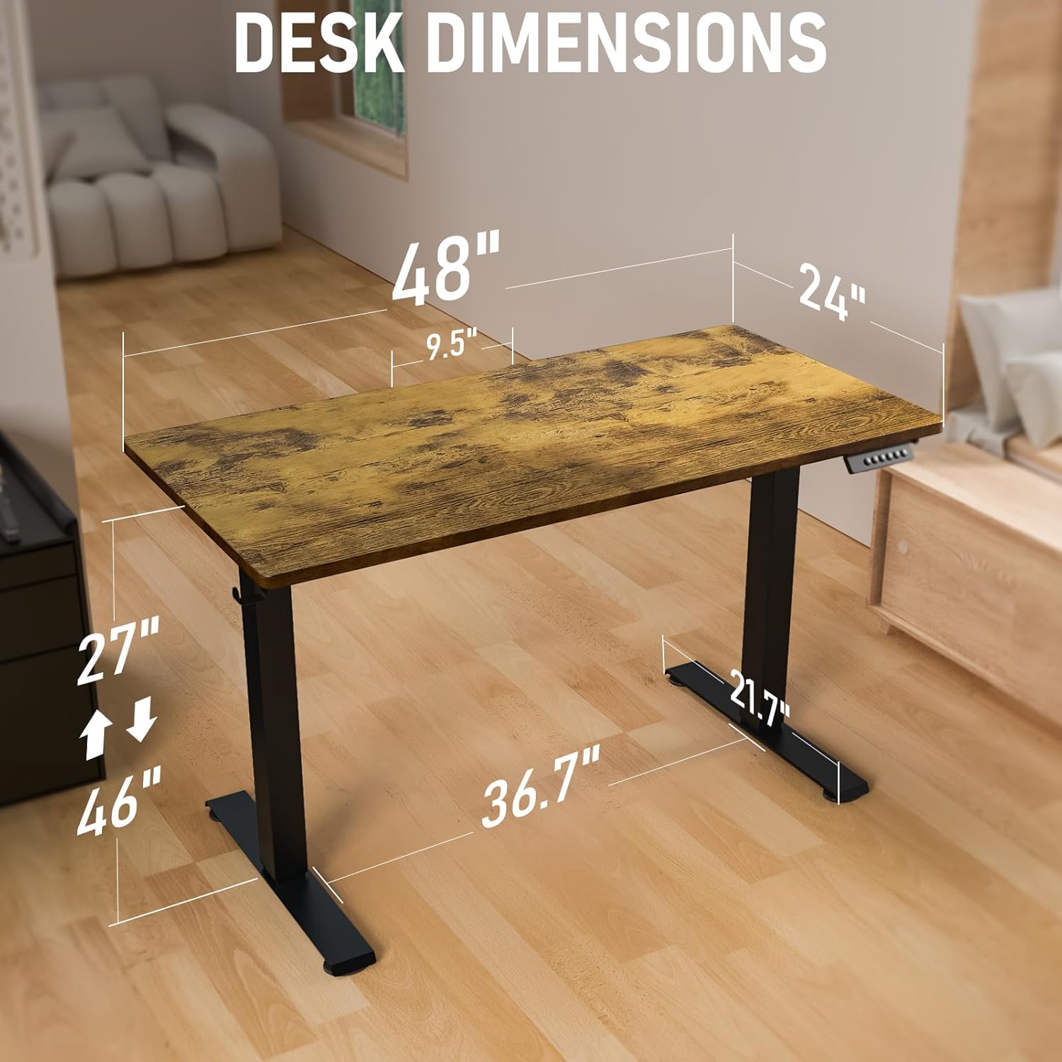 Invest in your well-being and efficiency with the 48 * 24 Small Electric Standing Desk, the smart choice for a motorized home office, computer, or gaming workstation. Upgrade your workspace today and elevate your productivity to new heights.