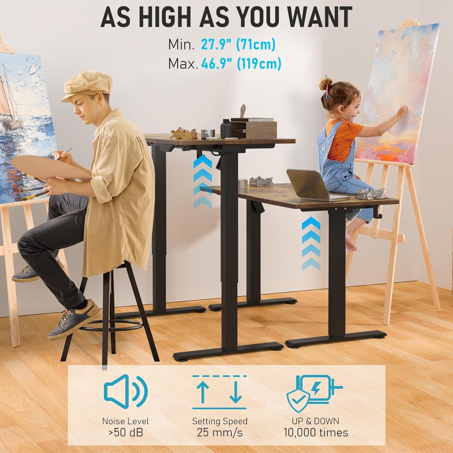 Whether you prefer sitting or standing while you work or play, this electric standing desk allows you to effortlessly switch positions to reduce fatigue and improve circulation. Say goodbye to the discomfort of long hours spent sitting at a traditional desk and experience the benefits of a healthier work style.