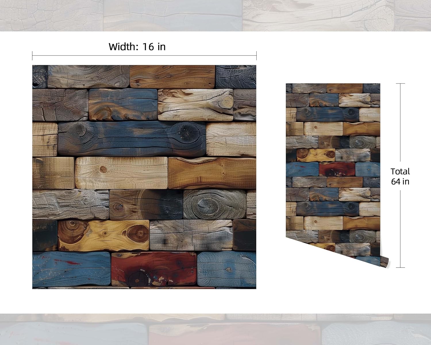 FLFK Faux Wood Bricks Wallpaper,Peel and Stick Wood Grain Wall Mural for Living Room, Bedroom, Kitchen, Office, Apartment Decor 16″x64″