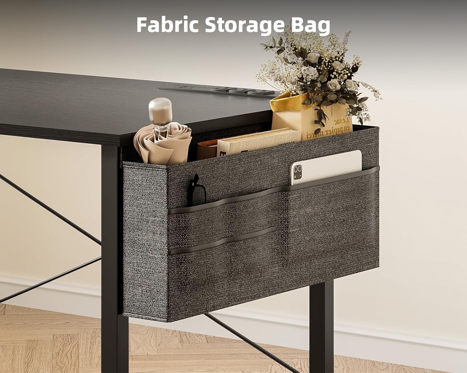 ODK Computer Desk – 48 Inch Office Writing Desk for Home, Student Study Desk with Storage Bag, Headphone Hook & Power Outlets, Modern Simple Table for Bedroom, Black